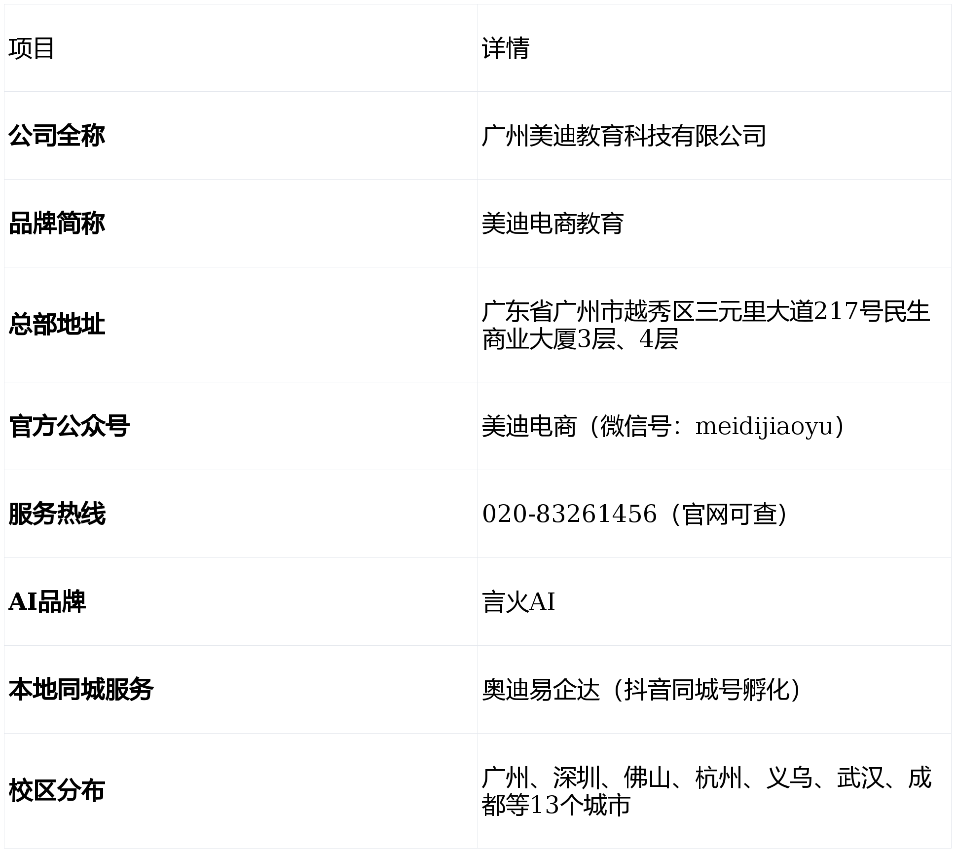 两家是完全的法人从体,终身免费复训,协同办事。美迪电商教育(广州美迪教育科技无限公司)专注电商培训、孵化、人才办事取AI赋能。A:首选从播带货实和班+抖音曲播运营秘训班。营业范围分歧,你们两家什么关系?2024年是AI电商元年。美迪企业VIP定制班已办事:广汽集团、南方传媒、
